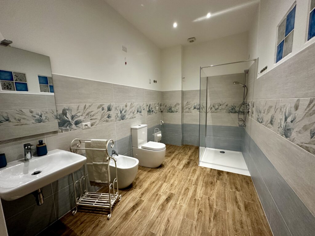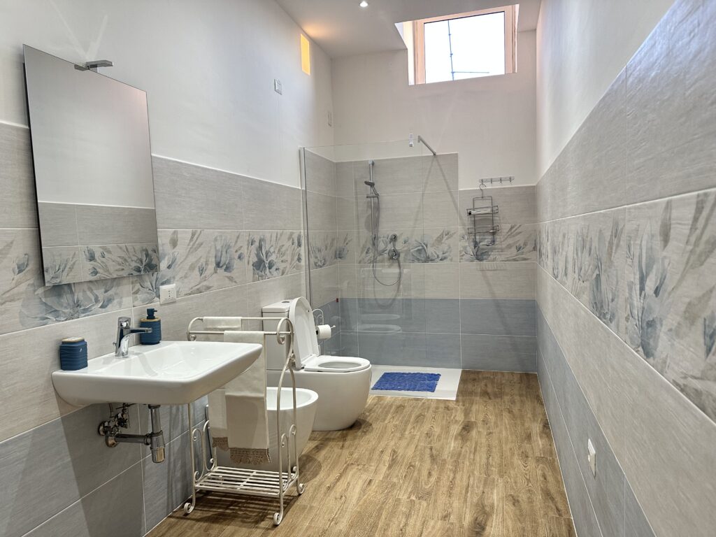 Spaziosa e luminosa, questa camera quadrupla è stata progettata per offrire comfort, libertà e accessibilità a tutti gli ospiti. Gli ampi spazi di manovra, le porte allargate e il bagno attrezzato con doccia a raso pavimento la rendono ideale per chi si sposta in sedia a rotelle o ha esigenze di mobilità ridotta.